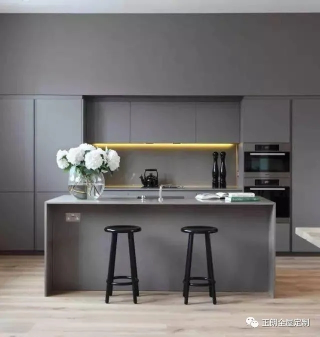 The high-grade gray cabinets reveal the elegance of the atmosphere,